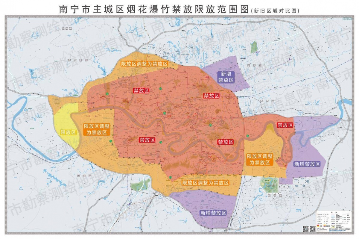 1月28日,南国早报客户端记者从南宁市应急管理局获悉,随着南宁市城市建设的快速发展,原划定的南宁市城市规划区内禁止、限制燃放烟花爆竹区域已不能满足城市发展的需要。今年,南宁市城市规划区内燃放烟花爆竹禁止和限制区域有所调整,春节想燃放烟花爆竹的市民,请注意勿在禁止区域内放烟花爆竹。