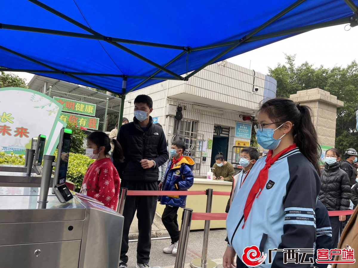 南宁市青秀区埌东小学通过“智慧防疫”道闸控制系统管理学生健康情况。广西日报-广西云客户端记者 沈程/摄