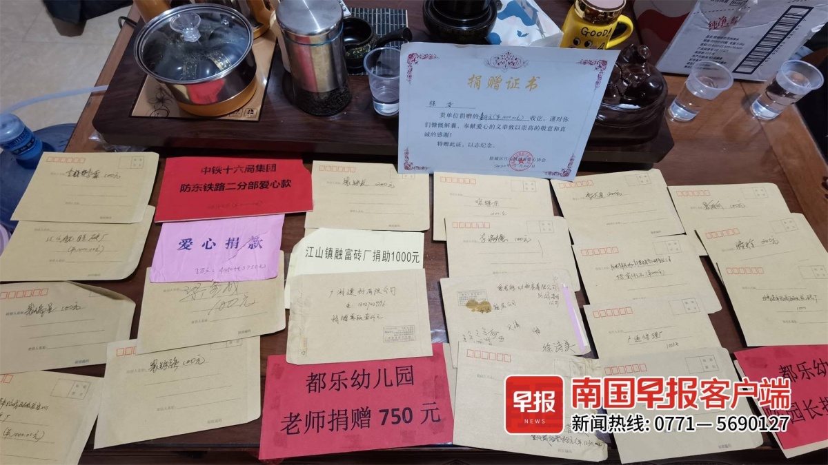 ▲小裴的妈妈一直保留着爱心人士的捐款资料。南国早报客户端记者 钟小启 摄