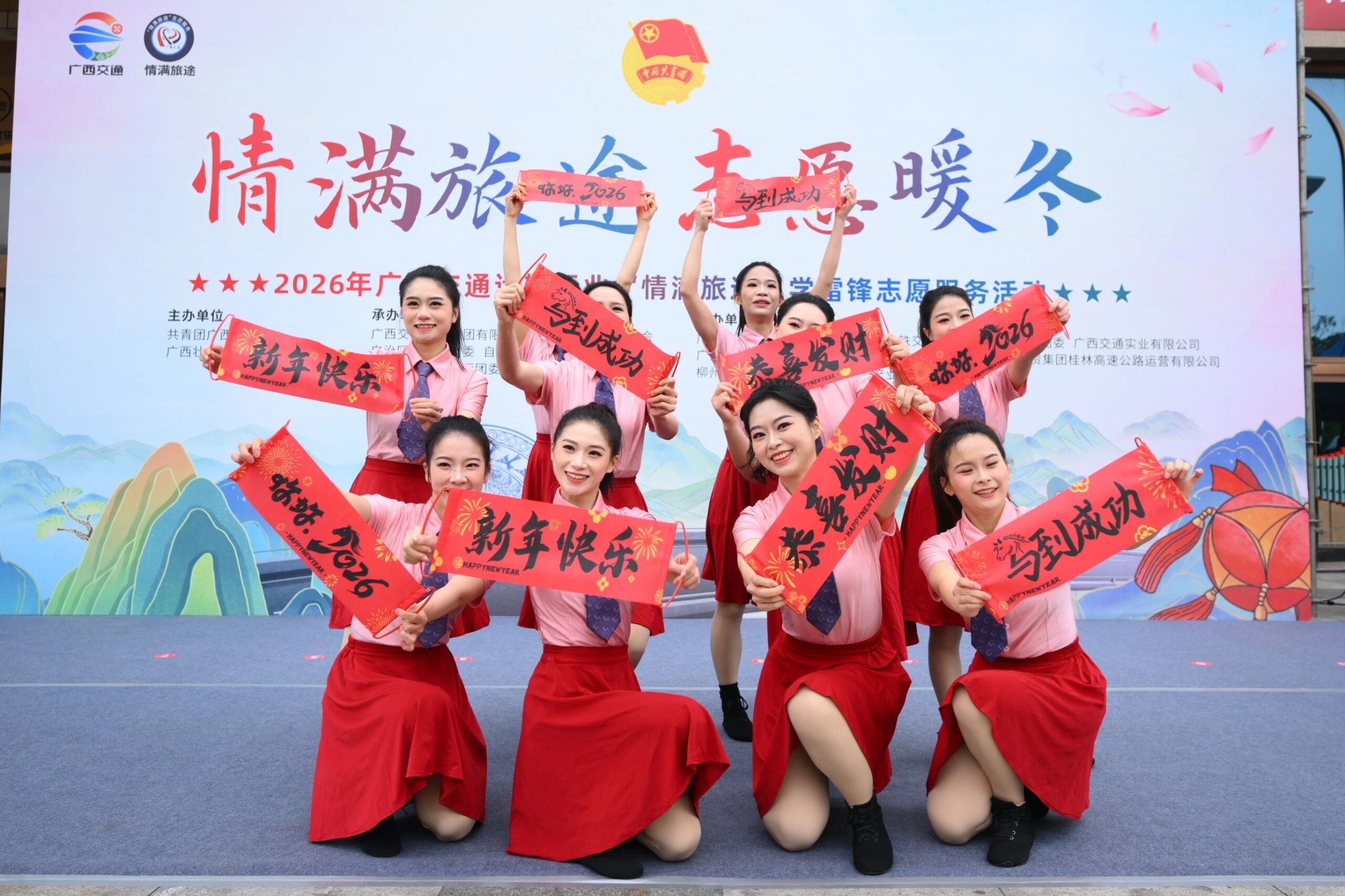 启动仪式现场,黄永忠宣布2026年广西交通运输行业“情满旅途”学雷锋志愿服务活动正式启动,并表示,春运是每年检验交通运输服务能力和水平的“大考”,做好春运服务保障工作意义重大,希望各级各部门要积极动员广大青年投身服务春运大局中,为旅客提供平安、便捷、温馨的出行环境。一要着力提升服务品质,以此次活动为契机,完善交通运输各场所场景服务设施,以更饱满的热情投入服务。二要加强重点群体保障,扎实开展“春暖农民工”行动,用心服务、关心关爱特殊群体和春运一线从业人员,切实帮助群众解决实际困难。三要强化出行引导服务,及时发布气象预警、路况信息,畅通交通运输服务监督热线,加强安全文明出行宣传教育,积极讲好春运交通故事,让交通青年志愿服务融入日常,用实际行动共同绘就“平安春运、便捷春运、温馨春运”的美好画卷。